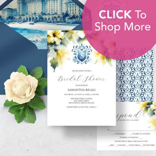 Blue and Yellow Watercolor Crest and FloralsConçu par Victoria Grigaliunas