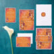 Vibrant hand drawn flowers with a sunset sky background - Vertical RSVP card