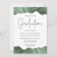 Cette invitation à la fête de graduation branchée comporte une bordure supérieure et inférieure de géode d'aquarelle dans les tons vert sauge avec des reflets de parties scintillant argent. Le mot "Graduation" apparaît dans la parties scintillant faux argent dans la police d'écriture moderne décorative. Customisez l'invitation avec le nom du diplômé en vert sauge et les détails de la fête en gris charbon sur un arrière - plan blanc. Une image d'agate verte et argentée assortie apparaît à l'envers.