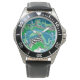 Sage Green, Blue, Black and White Abstract Fluid watch.