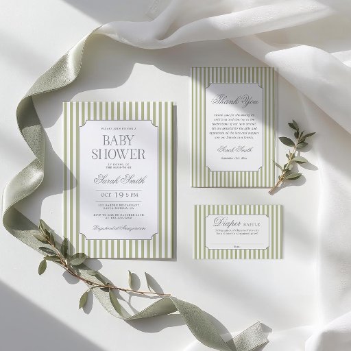 Sage Green Stripe Baby Shower Invitation