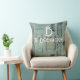 Moderne trendy monogram familienaam vierkant gooi kussen, aanpasbaar, personaliseerbaar. Als je de typografie niet nodig hebt, kan het eenvoudig worden verwijderd.Monochrome monochromatische aspect, met subtiele nuances van saliegroen, olijfgroen, blauwgroen blauw, grijs.Gemutste poedervormige tonen, grunge distressed look voor het script en voor het decoratieve ontwerp.Textieltextuur in abstracte geometrische compositie. Gemakkelijk te passen in elke omgeving, vooral voor de moderne boerderij, het huis aan het meer of zelfs strandhuisdecoratiestijl.Casual ontspannen design look, soort patchwork interpretatie, voor een comfortabele gezellige sfeer bij u thuis of als een prachtig creatief origineel doordacht cadeau idee.