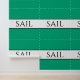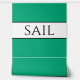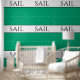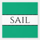 Dit nautische ontwerp is voorzien van sportieve, moderne "SAIL" -tekst gecentreerd in een brede witte middenstreep gemarkeerd met slanke zwarte strepen tegen een groen blauwe achtergrond. De kleuren en tekst in dit ontwerp kunnen worden gepersonaliseerd.