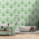 Salie Groen en Groen Damask Bloemschil en stok Behang