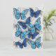 Verticale samenstelling van realistische, blauwe en witte morfovlinders op grijze getextureerde achtergrond. Morpho blauwe vlinder.