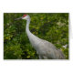 Een foto van een prachtige Florida Sandhill Crane die zich op een zonnige dag voor een afbeelding poseert op een lege (binnen) kaart