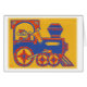 Santa Lives. Kerstkaarten en andere kerstcadeautjes van Santa Train zijn voorzien van een unieke Keller Kard-creatie van Santa Ring in zijn blauwe en rode trein tegen een gele, oranje achtergrond en met een vlag met de woorden Santa Lives. Decoreer uw huis, de brievenbussen van uw vriend of vul die dozen onder de boom dit vakantieseizoen met een linoleum hand-besnoeiing blokdruk ontwerp. Santa Lives. Bewijs het aan uw vrienden en familie met onze oorspronkelijke Santa Train!