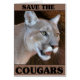 Un gros plan d'un cougar avec les mots Save The Cougars qui l'entourent.