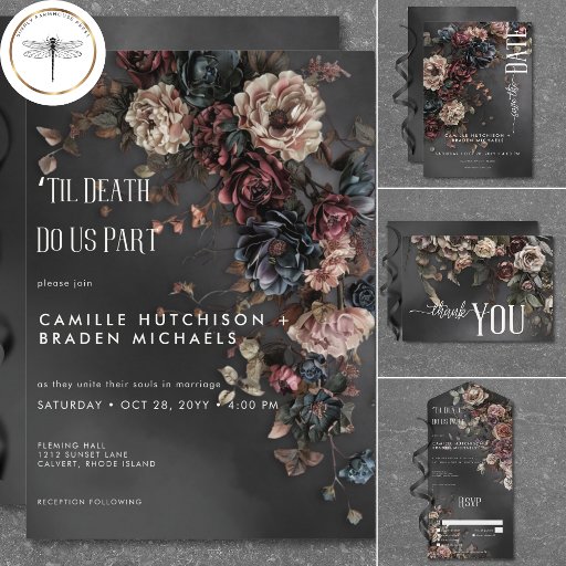 Save The Date Black Moody Gothic Flowers & Mist Mariage
