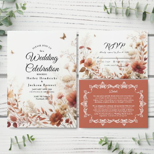 Save The Date Boho Browns with Butterflies Floral Wedding