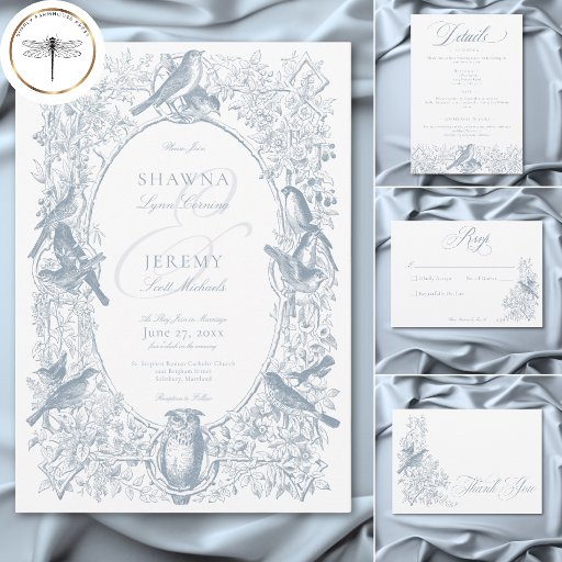Faites-vous plaisir avec notre mariage élégant à la chinoiserie et évitez la carte datant, un mélange parfait d'élégance intemporelle et de charme rustique. Doté d'un design délicat d'inspiration nature, ce design présente un feuillage vinifié complexe, des branches gracieuses et de charmants motifs d'oiseaux dans une palette bleue douce et poussiéreuse. Le style chinoiserie ajoute une touche sophistiquée et vintage, tandis que les éléments organiques créent une ambiance chaleureuse et romantique idéale pour les mariages de jardin, les cérémonies en plein air ou les lieux de campagne. Il donne le ton d'une fête raffinée mais détendue. Idéal pour les couples à la recherche de design mariage bleu poussiéreux, les invitations à un mariage de chinoiserie, la papeterie mariage d'inspiration nature, ou les élégants modèles mariage rustiques. Créé par Simply Farmhouse Press.