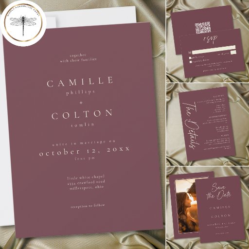 Save The Date Elegant Burgundy Wine Minimalist Wedding
