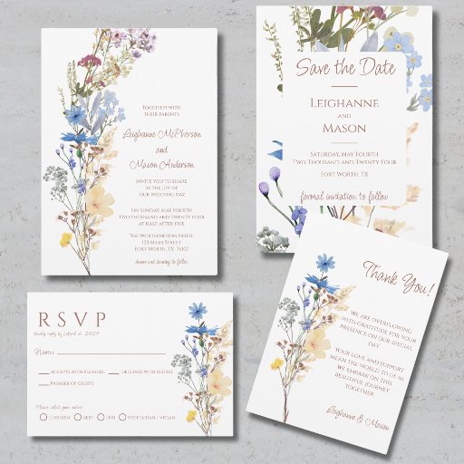 Annoncez votre journée spéciale avec cet élégant enregistrer la carte de date avec des fleurs sauvages d'aquarelle douce dans un jardin romantique design. Les fleurs délicates et la typographie classique en font un endroit idéal pour les mariages du printemps ou de l'été avec un thème botanique, rustique ou extérieur. Personnalisez avec vos noms, date et message personnalisé.