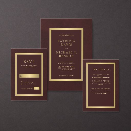 elegant weddingtypographymodernsimple minimalclassy luxurygold framedark burgundystylishclassic formalfaux metallic