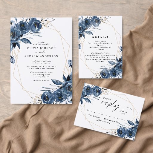 Elegant Navy Blue Geometric Floral WeddingConçu par Halyna Tymoshenko