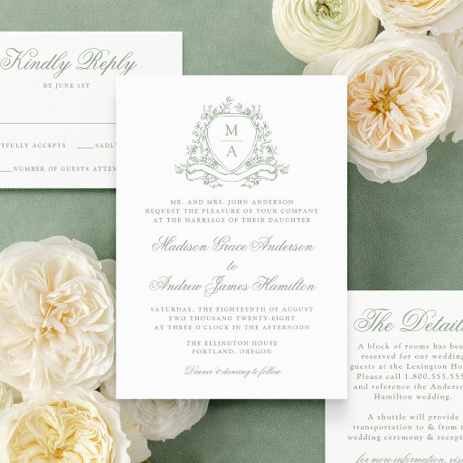 Elegant Sage Green Floral Crest Monogram WeddingConçu par Jessica Letterman