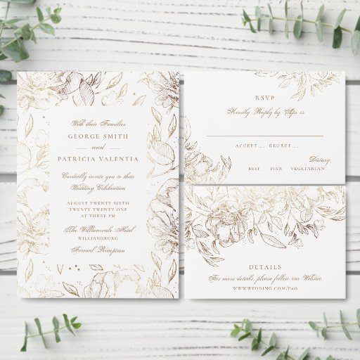 Gold Foil Flowers Hand Drawn Elegant Conçu par Phrosné Barwood
