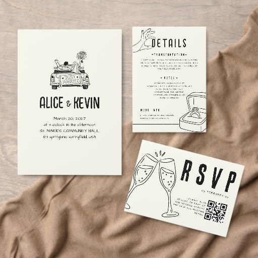 Save The Date Ivory Hand Drawn Illustration Wedding Minimalist