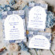 Un design intemporel bleu et blanc inspiré des classiques porcelaines de Delft et des motifs de toile de Jouy française. La bordure de carreaux patchwork combine des florales délicates, des rayures et des motifs ornementaux qui évoquent les céramiques européennes vintage. Un panneau arqué doux au centre garde la mise en page raffinée et élégante tout en permettant aux détails du motif inspiré de la porcelaine de mettre en valeur la célébration avec beauté. Parfait pour les couples qui planifient un mariage sophistiqué bleu et blanc avec un charme européen traditionnel.