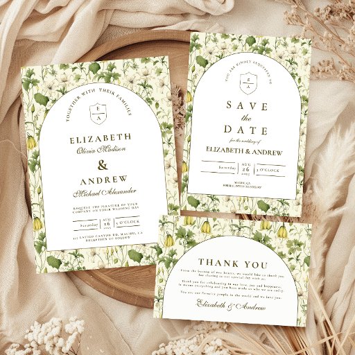 Save The Date Neutral Botanical Arch Garden Wedding