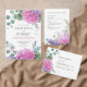 Celebrate your special day with these elegant pink hydrangea watercolor wedding invitations. Featuring lush botanical illustrations in soft blush pink, these romantic garden wedding invitations capture the beauty of spring wedding or summer wedding celebrations.