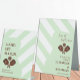 Preppy pickleball themed celebration with green and white stripes and chocolate brown accent typography. Photo template via Pixabay licensed under CC0 and must be replaced with your own photo