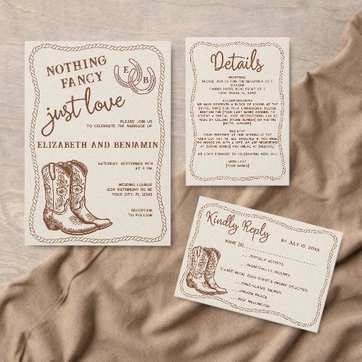 Western Hand Drawn Nothing Fancy Just Love WeddingConçu par Margarita A