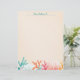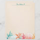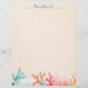 Twee schelpen en kleurrijk koraal vormen een mooie onderste rand op dit briefhoofdbriefpapier. Perfect voor iedereen die van de zee houdt. Geweldig voor correspondentie en aanpasbaar voor een nieuwsbrief, uitnodiging met een marien thema of een zeevruchtenmenu.