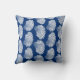 Gooi kussen in een blokprint patroon, gebaseerd op een scallop shell, in wit op een navy blauwe / indigo achtergrond