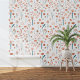 Folkstijl bloemenmotief met Scandinavische blush roze en zeeen schuimbloemen op een witte achtergrond. Originele kunst van Nic Squirrell.