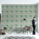 Een Scandi geïnspireerd bospatroon met boswezens en een koekoeksklok op een wijze groene achtergrond. Originele kunst van Nic Squirrell.