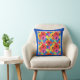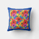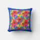 Een Sierkussen of kussen, met een levendig gekleurd patroon van papavers en cornbloemen, van een met de hand geschilderd ontwerp van Judy Adamson.