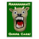 Een groetenkaart met een eng monstermotief, en de titel "Rrrrrrrrrrh!!! Gimme Cake!" met de hand getekend en geschilderd in digitale olieverf. Opgenomen met Zazzle tekst. Een ongewoon en origineel ontwerp dat op zich leuk is of verder kan worden aangepast.