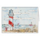 Une impression couleur de l'eau d'un phare et d'un voilier sur l'eau.