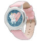 Hier is een horloge waar elk klein meisje van zal houden! Het beschikt over een vrolijke witte eenhoorn met regenboogkleurige manen en staart. De eenhoorn staat voor een roze hart. Witte cijfers maken het horloge gemakkelijk te lezen. Alles is op een blauwe achtergrond geplaatst. *Graphics door PrettyGrafik Design.