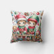 Kerstkussen met een illustratie van schattige kleine elfjes die speelgoed maken in hun Noordpoolworkshop. Schattigee grillige kerstkunst.