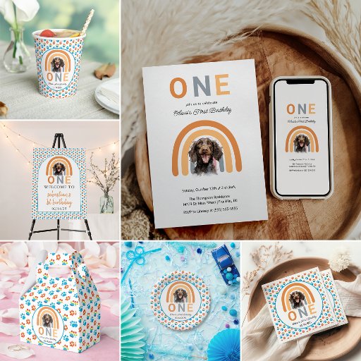 Adorable Dog Rainbow Watercolor 1st Birthday PartyOntworpen door SAIDA ELHADDAOUI