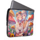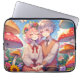 Anime jongen en meisje houden handen in de liefde zitten in een partij van paddenstoelen en bloemen op de achtergrond.