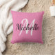 Gooi kussen met een roze achtergrond en wit custom monogram eerste initiaal en voornaam.