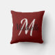 Gooi de kussen met een donkerrode achtergrond en wit aangepast monogram eerste initiaal en voornaam.