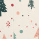 Een charmant vakantiepatroon met grillige kerstbomen in pastelgroen en roze, met verspreide stippen en sneeuwvlokken op een zacht crèmekleurige achtergrond. Perfect voor feestelijke decoratie of seizoensgebonden producten.