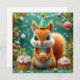 Charmante eekhoorn met een feestelijk pet, omgeven door levendige versieringen en kleurrijke cupcakes in een speelse, vrolijke omgeving.