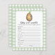 "Een beetje aardappel is onderweg." Vier het met dit baby shower met cartoon aardappels thema! Waterverf schattige aardappel met baby gezicht. Groene kooi. Antwoorden: HUNKEREN, HUILEN, FOPSPEEN, FLES, NACHTLAMPJE, SLAAPZAKJE, KINDERWAGEN, RUGGENGRAAT, BOERDERIJ, KINDERSTOEL, LUIERZAK, ZWENDEL