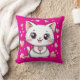 Schattigee Chibi Cat Roze Kussen met Harten Kawaii