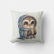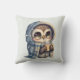 Kussen met een kawaii illustratie van een uil met grote ogen in een winterjas en sjaal met een hete koffie.