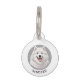 Dit ronde pet ID label heeft een AI afbeelding van mooie happy samoyed op een grijze achtergrond. Personaliseer het met naam of foto van uw huisdier.