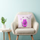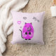 Gooi kussen met schattige lila kat met hartjes op roze achtergrond