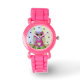Dit horloge heeft een grillige vector illustratie ontwerp met een schattige Uil op een tak en bladeren. De uil is versierd met harten en bloemen en geometrische patronen (polka dots, chevrons). De gestreepte achtergrond heeft zachte pastelkleuren. De kleuren zijn roze, paarse, groen, blauw en geel. De klokcirkels (in plaats van cijfers) zijn een object sjabloon. Als je het horloge meer wilt zonder hen, verwijder dan deze laag. Dit product kan ook worden aangepast door tekst toe te voegen