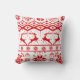 Schattigee rode kerst gebreide rendieren en sneeuwvlokken op een witte achtergrond. gooi kussen sjabloon