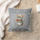 Een schattige grijze muis gekleed voor de winter in een kous pet Prettige feestdagen en sjaal houdt bessen en wenst je "^." Het is omgeven door een witte sneeuwvlok ontwerp. De begroeting kan eenvoudig worden gewijzigd in alles wat u verkiest.